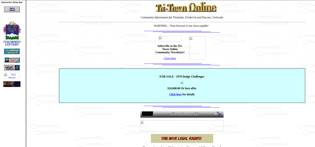 November 11, 1998 tri-town.com was born… We saw the need to have a local website to bring our community together. Frederick, Firestone and Dacono Colorado were all located in a close proximity of each other and were referred to as ‘The Tri-Towns’.
